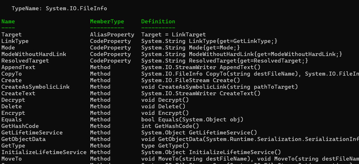 PowerShell возвращает объекты типа System.IO.FileInfo, у которых есть: