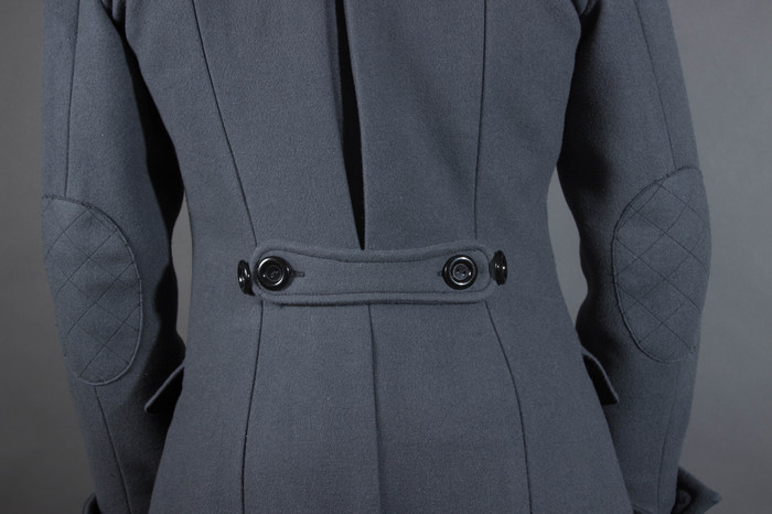 На спине - узнаваемая шинельная складка и функциональный хлястик.