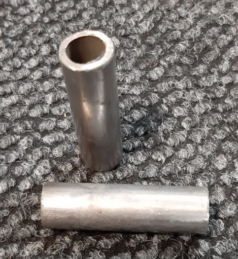 К удивлению среди прочих остатков обнаружилась труба из нержавейки как раз диаметром снаружи 16 мм, а внутри 12 мм. Отгрыз от нее 2 раза по 55 мм (ширина колесного диска между подшипниками):