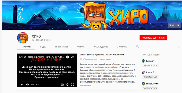Я зашёл на страницу этого Мирахмеда, оказалось он довольно популярный майнкрафтер на YouTube. Имеет канал "ХИРО". 18к подписчиков на данный момент.