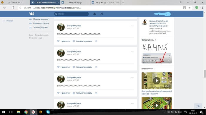 3 апреля 2016 года он создаёт группу по продаже шипучек с целью того же на*ба. Он её создаёт с другой страницы. А судя по всему, у него их много. С них он и пишет отзывы в день открытия (ну не тупица?) и ждёт, когда у него начнут "покупать" конфеты.