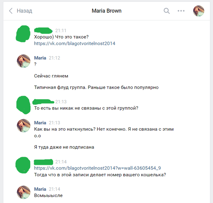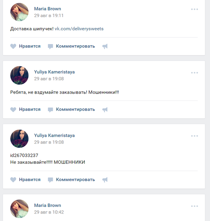 Сегодня я зашёл в соседнюю группу любителей "шипучек". Она была усыпана спамом от Maria Brown.