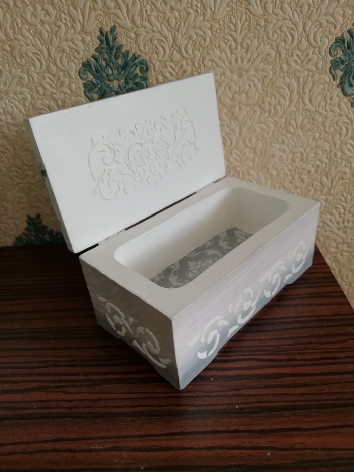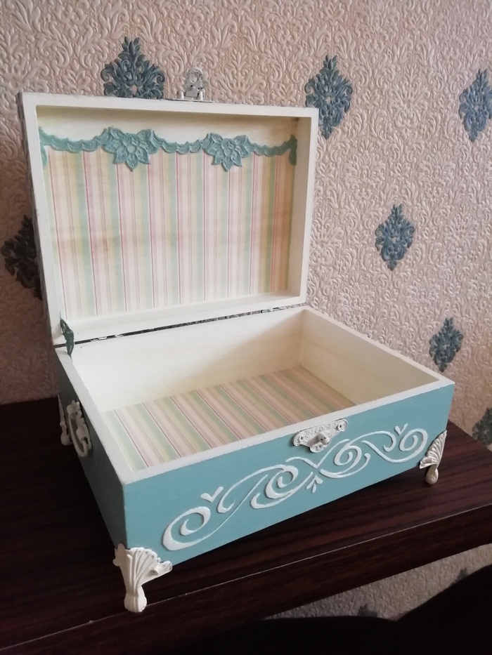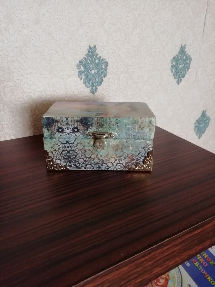 Ну и последняя шкатулочка - переделка из старой коробочки. Сделала просто так, для разминки)
