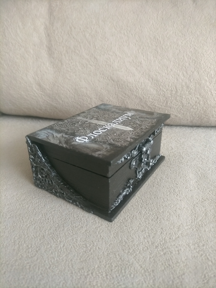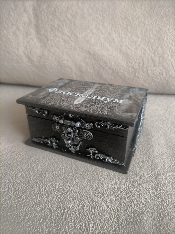 Я уже писала в другом посте, сын с друзьями играет в разные игры и часто выступает в роли ведущего. Для хранения кубиков игры Флоскалиум сделала ему вот такую фирменную шкатулку