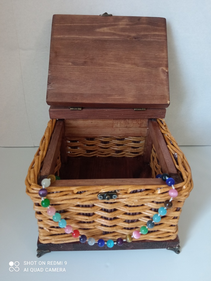 Одна из моих первых работ - вот такая шкатулка. Она могла быть однотонной, но мне захотелось попробовать два цвета. Ну и вот что получилось: