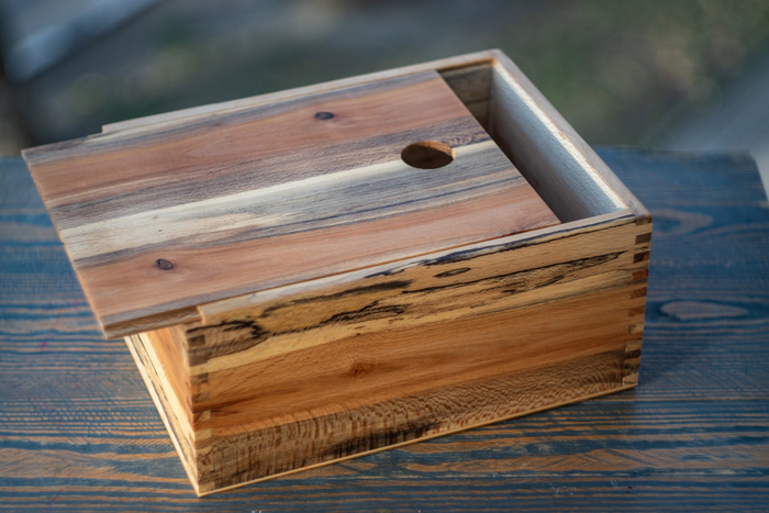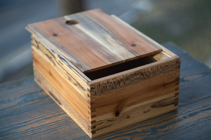 Где-то в это же время любимая женщина попросила сделать домой простую коробку для хранения открыток. Пора бы уже попробовать в деле свои запасы и из кучки бревнышек был выбран доброволец))