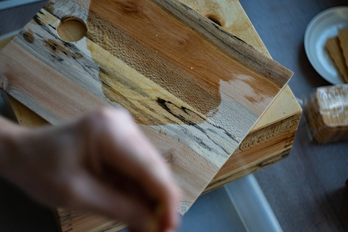 Из пары плашек были выбрана парочка подходящих по размерам и более-менее по рисунку. Из них уже вырезаны заготовки для стенок коробки и крышки.