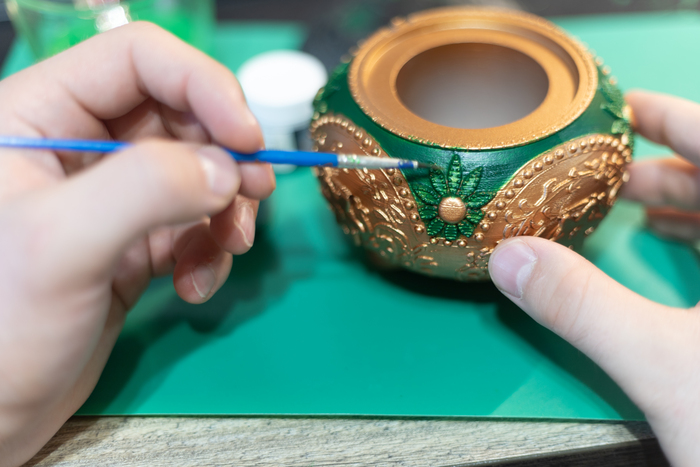 Теперь покраска кистью. Кисти и краски одолжил у друга.