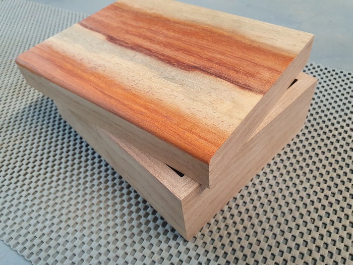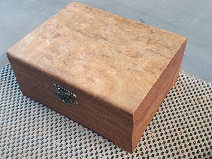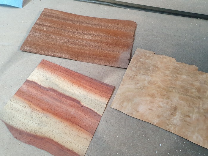 Крышка и дно шкатулок я традиционно делаю из фанеры и шпона. Мне так больше нравится. На этот раз будет шпон махагона, корень эвкалипта и что-то похожее на падук, но не падук :)