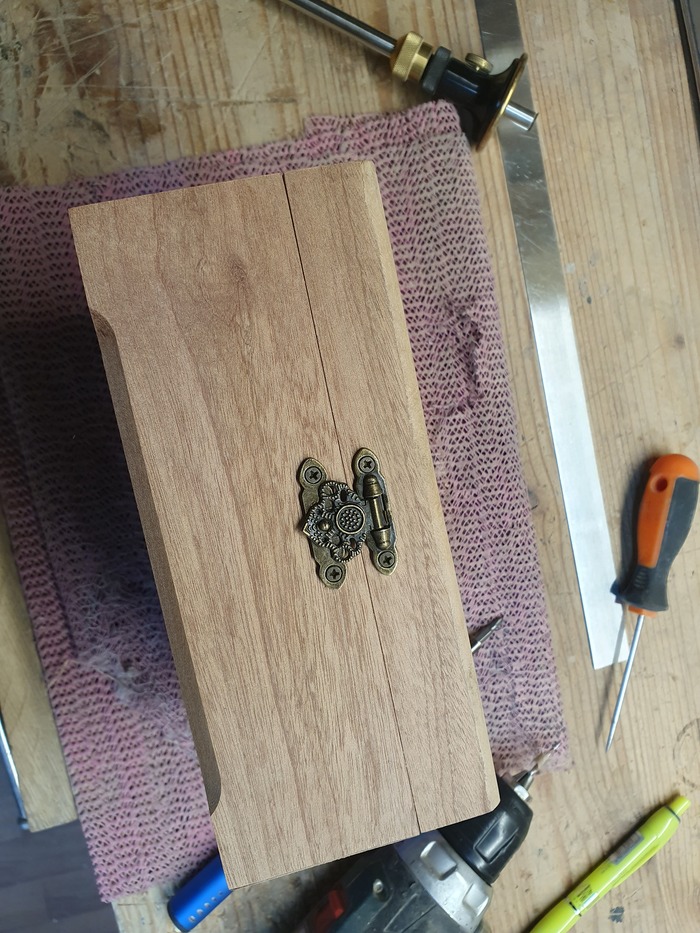 У двух шкатулок я сделал закругление перед приклеиванием шпона. Шпон пришлось приклеивать на закруглениях утюгом.