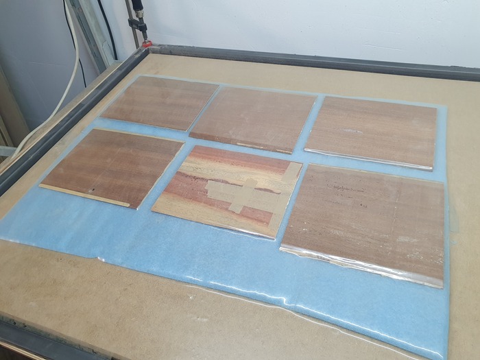 Фанеровку делаю в самодельном вакуумном прессе. Собрал его за 1 вечер у себя в мастерской. Очень удобно, полчаса - и все приклеено!