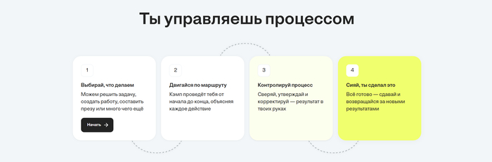Интерактивность: платформа ведёт тебя «по маршруту» — от задания до результата, с возможностью корректировки.