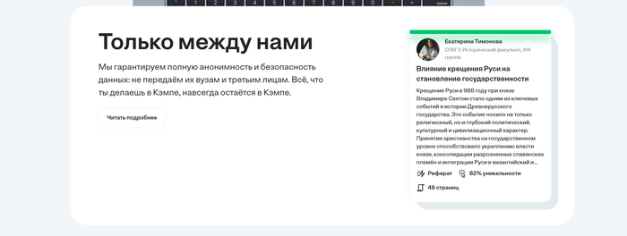 Безопасность: Кэмп не передаёт данные вузам и третьим лицам, обеспечивая полную анонимность.