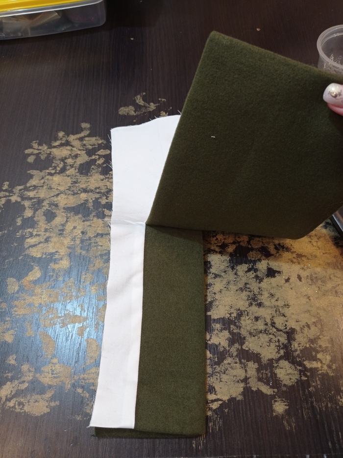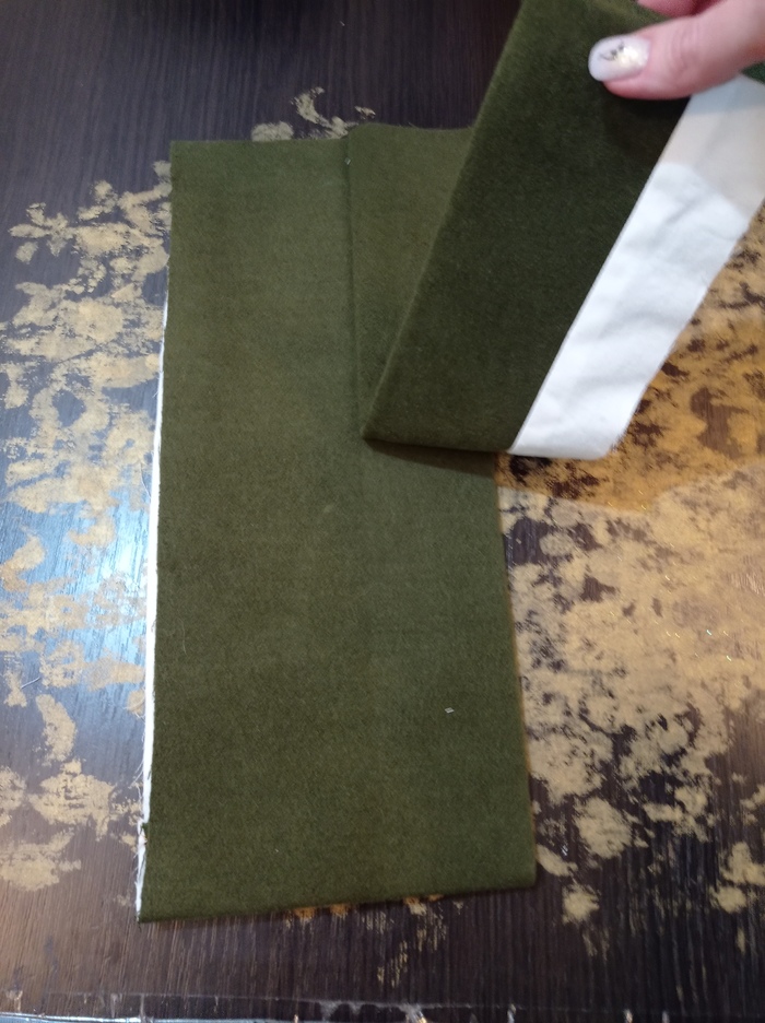 И соединяем горизонтальные срезы подклада, не доходя сантиметр до края подклада нижней части.