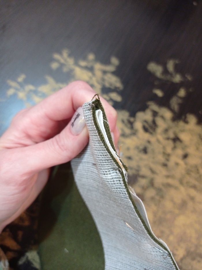 Выворачиваем, отутюживаем. Как видите, сгиб подклада немного выше сгиба лица получился, так и должно быть.