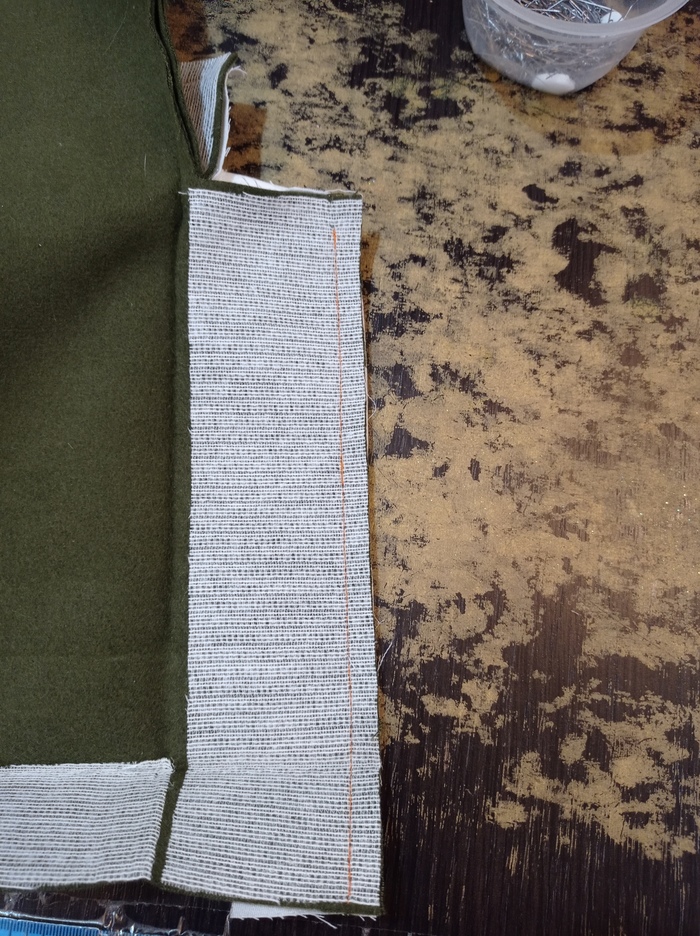 Стачиваем на 1 см по дублерину! Иначе подклад растянется, и будут некрасивые защипы.