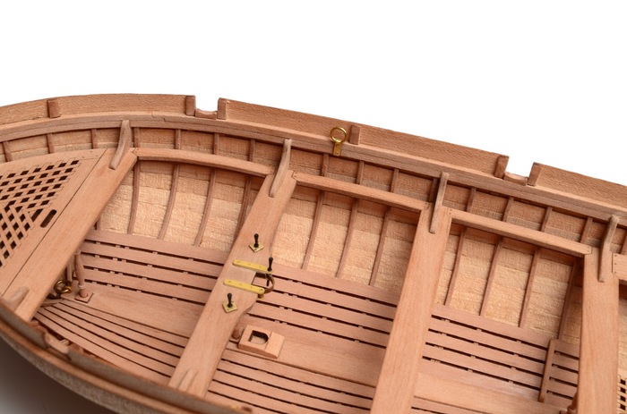 Подготовка начинки. Рыбины (проще говоря палуба, настил, пайол), рустерная решетка, кильсон. На рыбины наклеиваются поперечины, в кильсон и рыбины вставляется обух с рымом цепного подъема (говорит сам за себя, за него например подвешивают шлюпку на балках корабля).