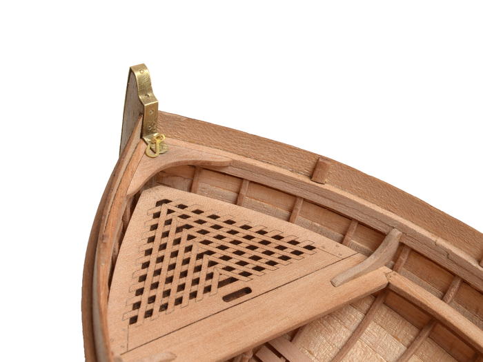 Установил кницы, которые дополнительно усиливают конструктивный набор шлюпки. Также добавил башмаки в уключины, на которые опираются весла. Иногда их делали из металла, иногда уключины оббивали кожей, чтоб противостоять износу от трения.