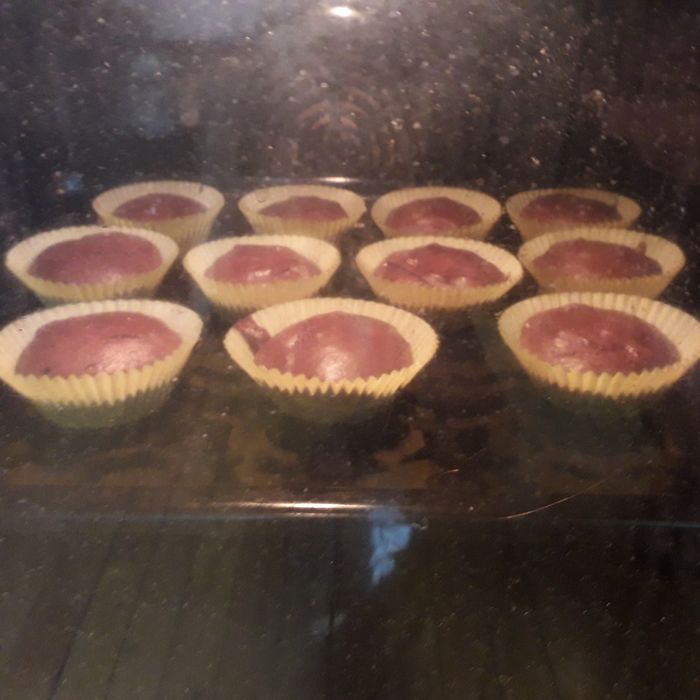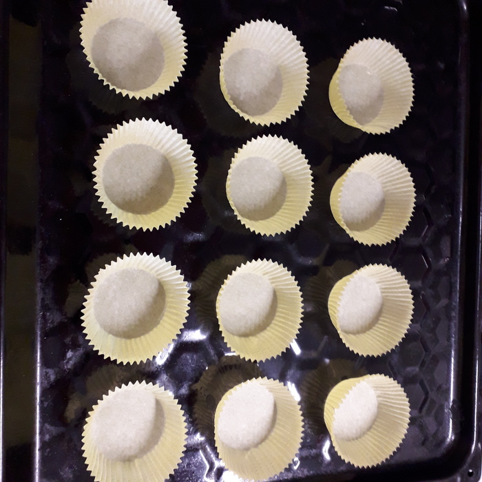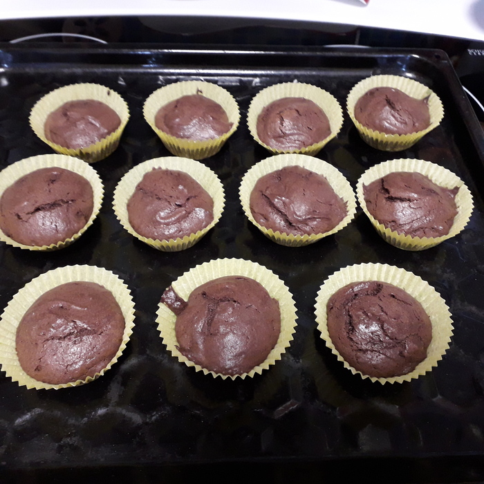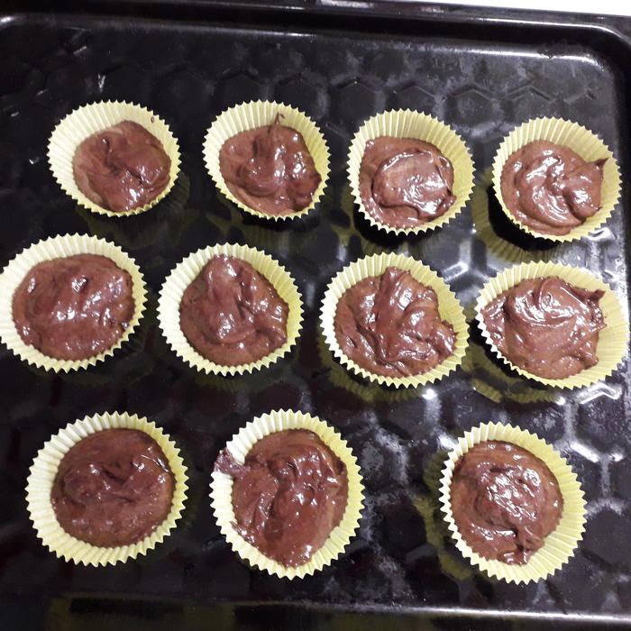 – Разлейте тесто почти до краёв — по 4 столовые ложки в каждую.