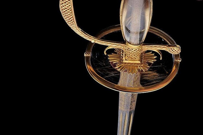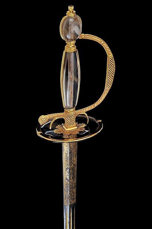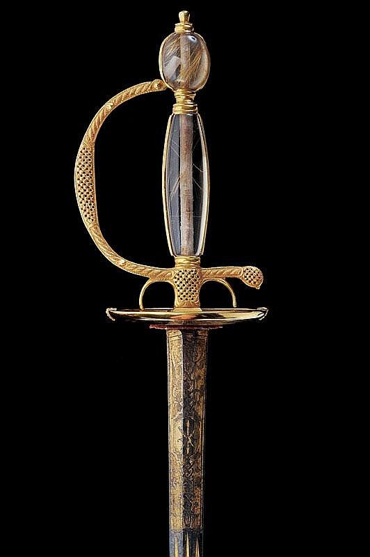 Костюмная шпага, 18 век, Богемия. Эфес из золота и горного хрусталя. Выставлялась на торги 21 марта 2010, Czerny's International Auction House.
