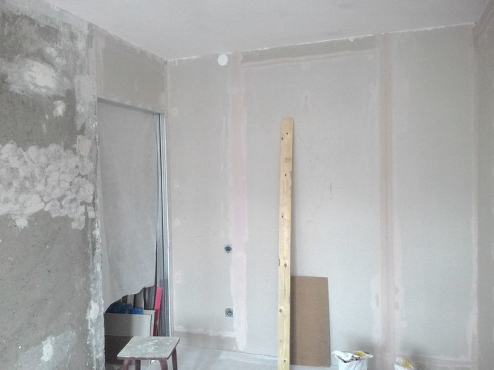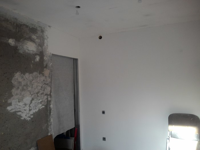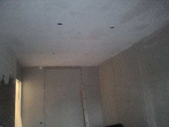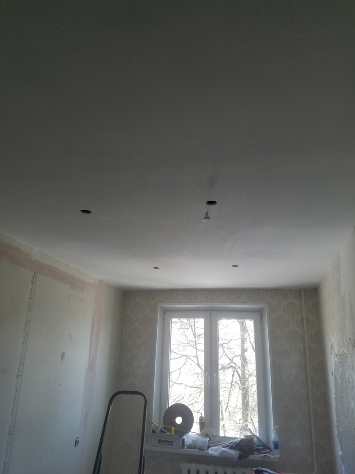 Но вот что смущает и не знаю, что делать в первую очередь: шпатлевку стен или все-таки сначала сделать потолок из гипсокартона? Стены все выровнены по маякам, штукатурка сделана местами из гипсовой, местами из цементно-песчаной смеси.