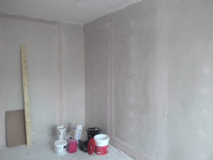 В замазывании ничего сложного нет, главное делать быстро, иначе шпатлевка застывает в ведре, приходится разводить новую. В последствии просто замешивал поменьше.