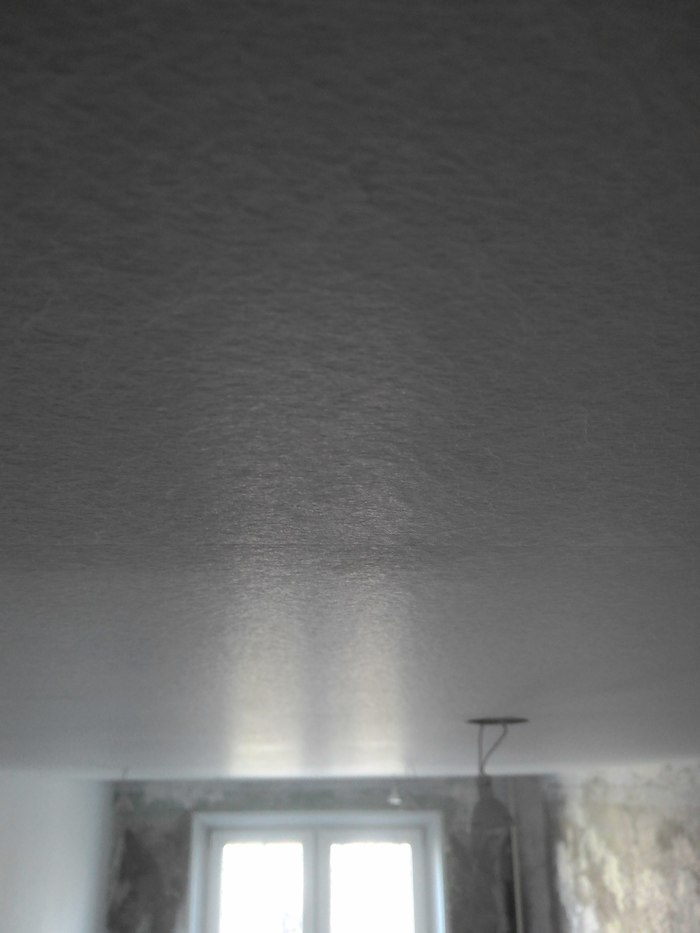 Заняло ошкуривание потолка почти неделю вечерами после работы. Зато удалось добиться практически идеально ровной поверхности потолка, так что, думаю, оно того стоило.