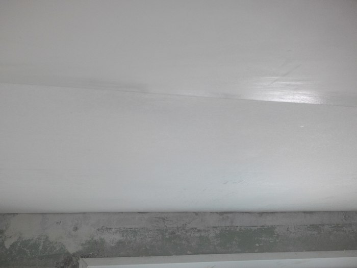 Над потолком с супругой долго думали и решали что же сделать, и остановились на стеклохолсте. У него в свойствах и придание дополнительной связки листов от трещин и фактура симпатичная. Тут как раз наступил апрель (да, давно посты не катал, каюсь) и время моего отпуска, который потратил на ремонт почти полностью. Закупили рулон стеклохолста и в первый день отпуска решил наклеить. В теории все просто, но вот не учел, что клеить буду один, ибо отпуск только у меня, супруга на работе. Проходился клеем по потолку, главное клея не жалеть, чтобы не отвалилось. Наклеивал стеклохолст и проходился сверху еще клеем. Следующую полоску стеклохолста наклеивал с нахлестом и проходил ножом по нахлесту, убирая лишнее. Таким образом стык получался незаметным. Фактура получилась интересная, но после сего мероприятия я 2 дня ходил и чесался, хотя работал в перчатках.