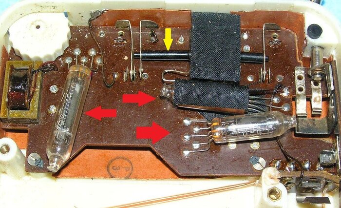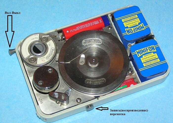 Конструкция действительно очень уникальна. Хоть к этому времени уже придумали транзистор, но производство транзисторов еще не было освоено. Поэтому Вилли собрал электронную схему на миниатюрных РАДИОЛАМПАХ!!!! Причем эти 3 радиолампы работали и на запись и на воспроизведение.