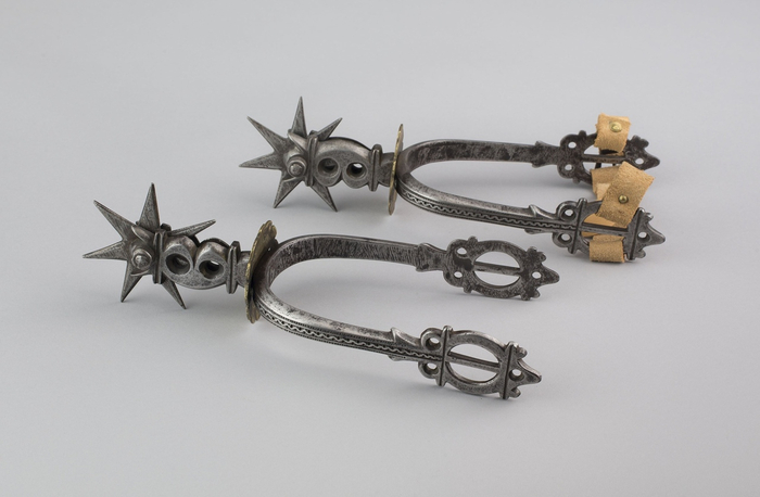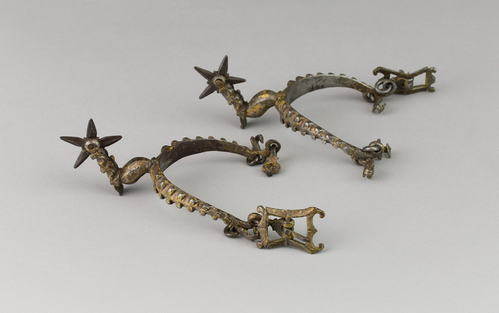 Золочёная шпора из Италии, около 1560 г. Также в составе изделия медь и серебро, вес шпоры 124,7 г⁠⁠