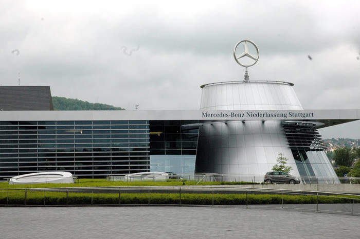 Наверное, было бы уместнее упомянуть здание Daimler, но не будем ущемлять штаб-квартиру непосредственно компании Mercedes в Штутгарте – все-таки, архитектурно она куда более выдающаяся. Как и в большинстве других случаев, здание находится в непосредственной близости к заводу и музею. Также рядом находится стадион имени Готтлиба Даймлера.