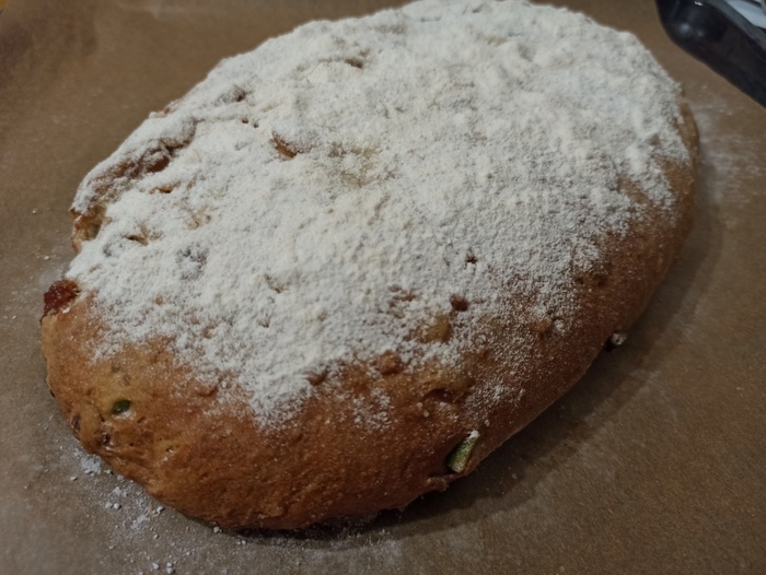 В целом буду считать эксперимент удачным: тесто поднялось, на вкус все отлично, времени потрачено часа 2,5, из них 1,5 часа на расстойку теста, а конкретно готовки не так много. Не знаю, на сколько мой результат близок к "настоящему" штоллену, жду комментариев от профессионалов)