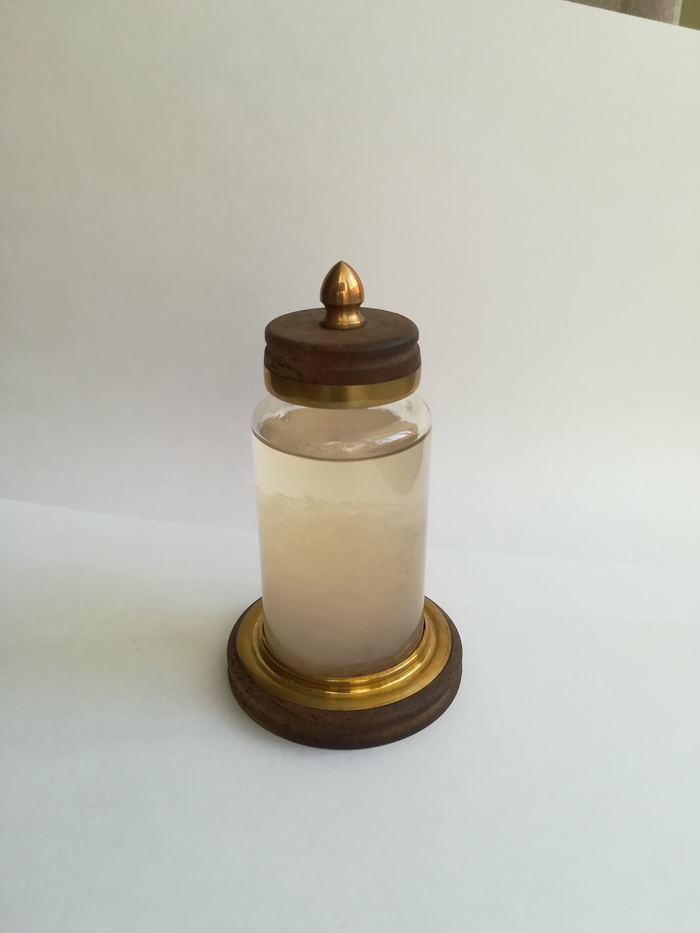 Народ на специализированных сайтах рассуждает, какая камфора лучше. Я точно не помню, но, кажется, синтетическая молекула завёрнута не так, как натуральная, и, возможно, этим и объясняется, почему раньше штормглассы работали, а теперь - нет. Я не парился, у меня не было выбора.