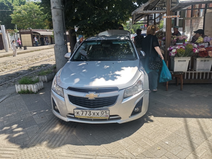 Сегодня, 04 июня 2025 года, в 13:50 по мск, передвигаясь по улице Коммунаров в сторону улицы Мира, прямо передо мной автомобилем с государственным номером К773ХХ01 был осуществлён въезд на тротуар. В процессе движения водитель игнорировал возмущения пешеходов до полного въезда между столбом уличного освещения и прилавками продавцов цветами, чем угрожал безопасности пешеходов и детей, выходящих из рядом находящейся школы. На мои возмущения водитель ответил "проходите, не мешаю" и отказался убрать своё транспортное средство.