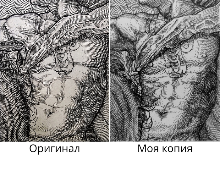 Конечно нужно понимать, что в оригинале были гравюры. Но я не столь серьезно настроена, чтобы у меня завелись металлические пластинки, кислота, офортный станок и вот это всё. Может когда-нибудь потом и это случится. Но пока просто линер.