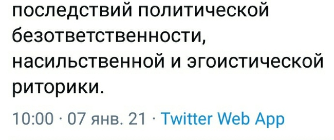 Первый — карт-бланш на разгон любой оппозиционной движухи: достаточно назвать её мятежом. Не, так-то понятно, что зачистка гипотетического майдана в центре Москвы — "это Другое". И всё же Кремль отныне может отвечать на любые наезды, просто цитируя сегодняшние речуги Байдена, Пелоси и Ко про "покушение на демократию" и "восстановление порядка". Грех не воспользоваться.