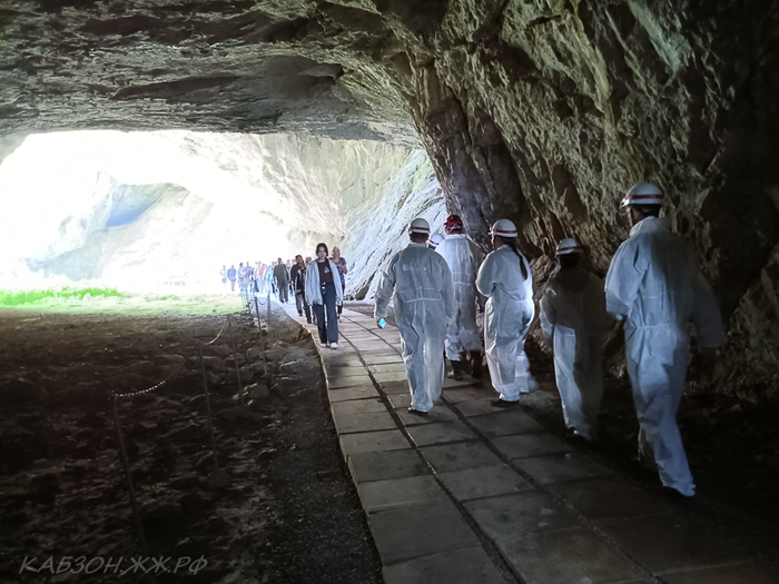 В пещеру мы шли в сопровождении гида, наша группа была около 20 человек, нам выдали несколько фонарей. Прошли мы немного, метров 300, остальная часть пещеры закрыта.