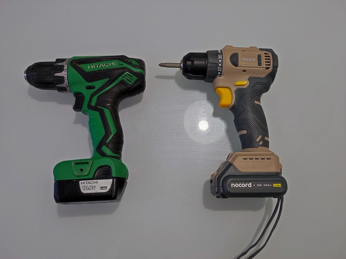 Хитачи был клевый. Легкий, удобный, надежный. Работал как часы и позволил построить мне баню. Много вагонки крутить - нужен легкий. Я хотел купить батареи к нему - только китай, которые работают кое как... Ок, куплю такой же шуруповерт...
