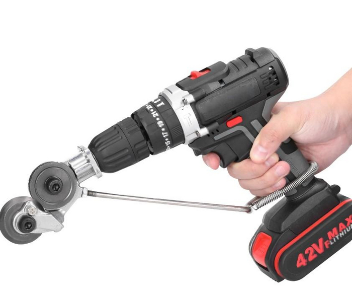 Насадка пригодится тем, кто работает с металлом листового формата. Устанавливается на любой шуруповерт или дрель.