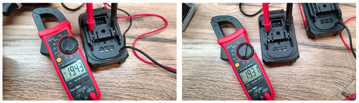 Оба аккумулятора пришли полностью заряженными, о чём свидетельствует индикация. Замерил напряжение на каждой батарее. Одна из них показывает 19, 43 в, а другая 19, 31 в.