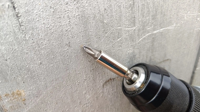 Пробуем закрутить несколько саморезов на 130 мм в дерево точка для этого меняем оснастку на удлинитель с битой. В удлинителе есть магнит, который удерживает биту и частично саморез. При данной работе нужно переключиться на первую скорость и выставить правильно крутящий момент. Иначе либо саморез не будет закручиваться до конца, либо в конце оторвёт шляпку. Под каждые размеры саморезов и в зависимости от материала, потребуется правильный выбор крутящего момента.