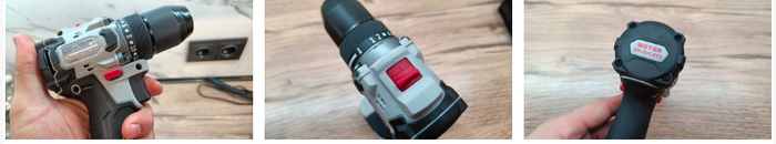 Рукоятка инструмента эргономичной формы. Курок под один палец, а чуть выше размещается переключатель реверса. Тут же можно увидеть наклейку с серийным номером инструмента.