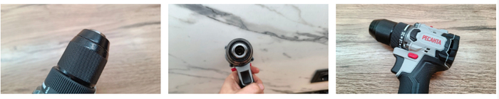 Быстрозажимной патрон выполнен из металла. Вокруг него присутствует кольцо выбора крутящего момента из 20 делений и режима сверления.