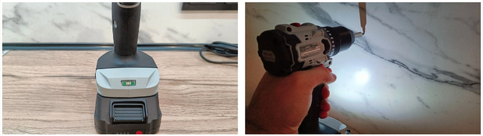 Подсветка рабочей зоны находится не под редуктором, а на платформе для установки аккумулятора. Это позволяет более детально проводить подсветку рабочей зоны.