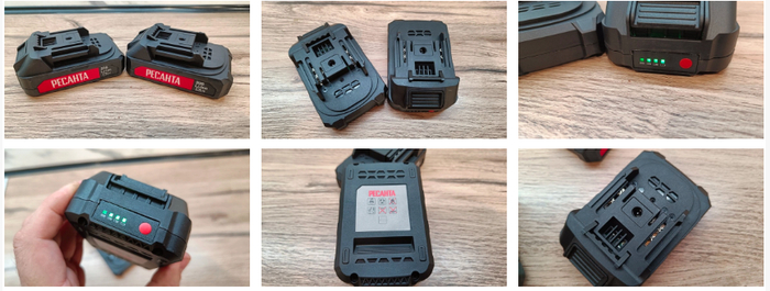Особое внимание к аккумуляторам. В комплекте две штуки по 2 а/ч каждый. Чуть ниже покажу их содержимое. Аккумуляторы хорошо собраны, пластик плотно подогнаны друг другу и есть несколько вентиляционных отверстий для охлаждения аккумуляторов. Для удобства контроля заряда предусмотрен индикатор на лицевой стороне. Уровень заряда аккумулятора можно проверить в любой момент нажав на соответствующую кнопку.