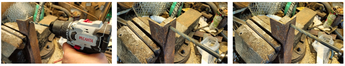 Также можно сверлить металл толщиной до 10 мм, но я использовал свёрла на 8 мм. В некоторых случаях лучше пройти сначала более тонким сверлом, а затем расширить отверстие используя более толстое сверло. Для демонстрации использовал советский уголок на 45 и сверло не самого лучшего качества и заточки.