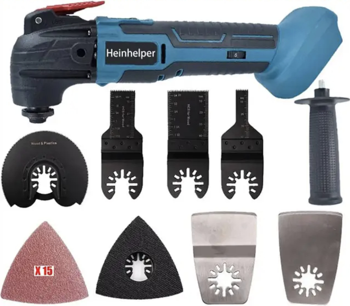 Многофункциональный инструмент heinhelper работает от аккумулятора и оснащён осциллирующим механизмом, который позволяет выполнять широкий спектр задач. С помощью сменных насадок он может резать дерево, металл и пластик, шлифовать поверхности и удалять старую краску. Его беспроводная конструкция обеспечивает удобство работы в труднодоступных местах.