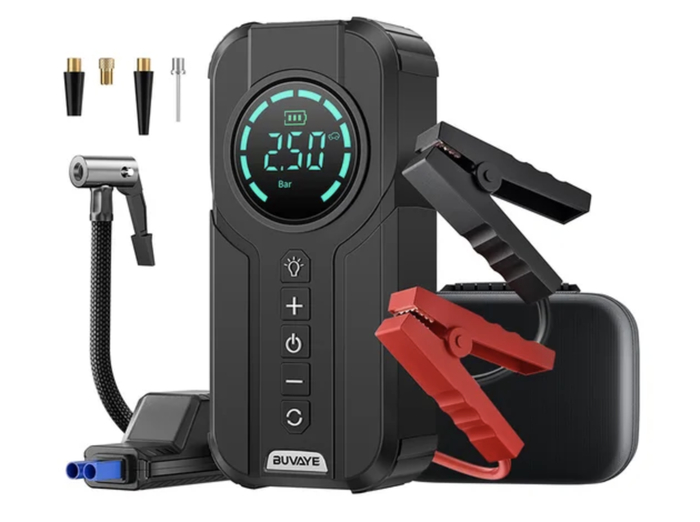 Этот мультифункциональный гаджет станет спасением в дороге. Он сочетает в себе мощный повербанк для зарядки мобильных устройств, пусковое устройство для разряженного аккумулятора автомобиля и компрессор с давлением 150PSI для накачивания шин. Все эти функции помещены в компактный и прочный корпус.