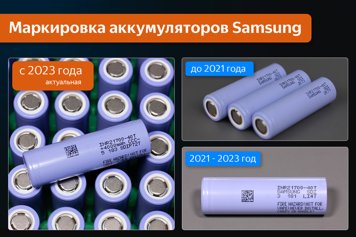 На аккумуляторах Samsung, выпущенных до 2023 года, эти строчки тоже есть, но вид (расшифровка) маркировки немного отличался.