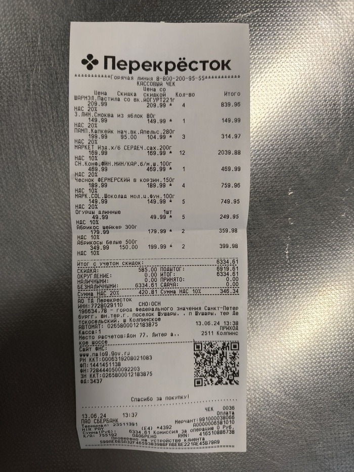 Сегодня четверг 13 июня, я нахожу в магазине "Перекресток" по адресу Санкт-Петербург, внешняя территория города, муниципальное образование поселок Шушары, территория Славянка, Колпинское шоссе д.77 - Пушкинский район.